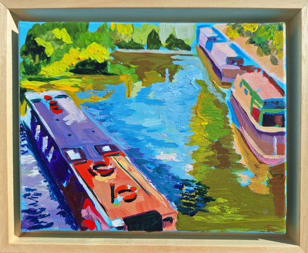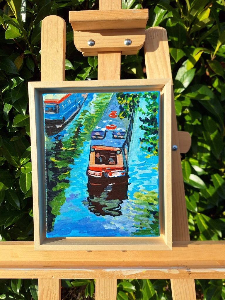 This painting is painted blue on the sides ; protected by a bright acrylic varnish. Ready to hang on a wall