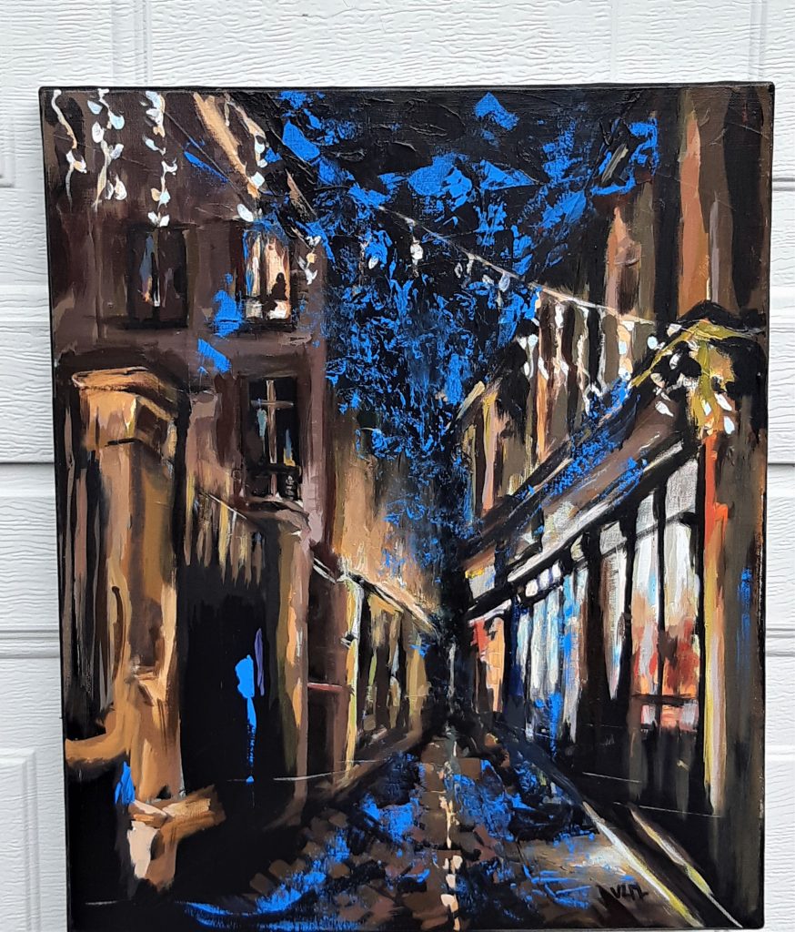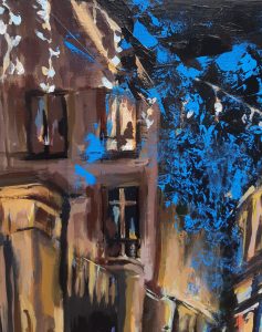 Ce bleu casse le classicisme de la toile et donne du dynamisme et du peps à la ville qui s’endort.